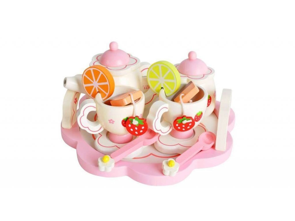 TELJES KÉSZLET - a készletben akár 16 elem található: 2 csésze tányérokkal és kanalakkal, fedős vízforraló, tejeskancsó, fedős cukortartó, 2 málna tea, narancs, lime és egy tálca két füllel tea felszolgáláshoz!