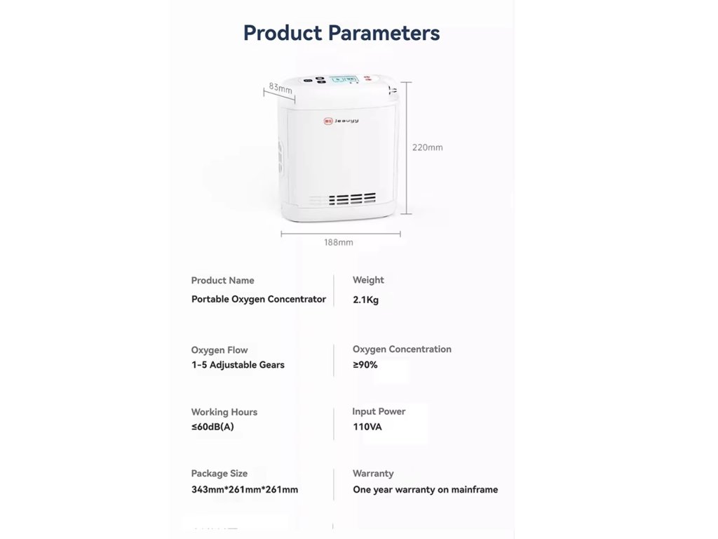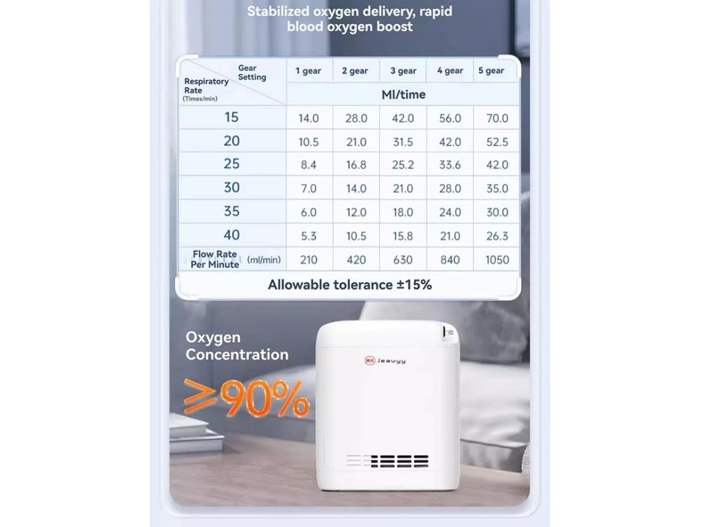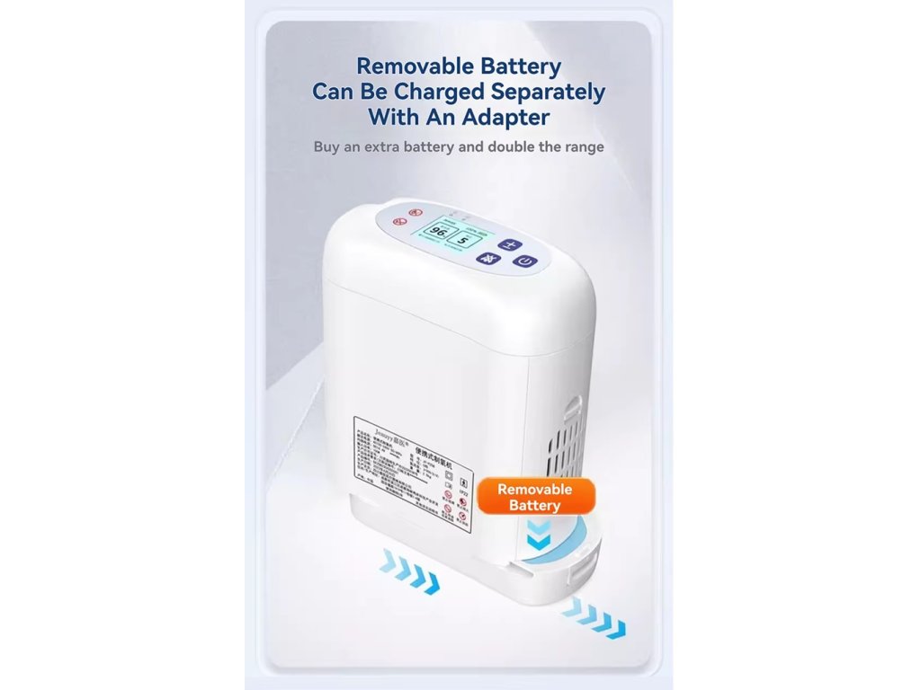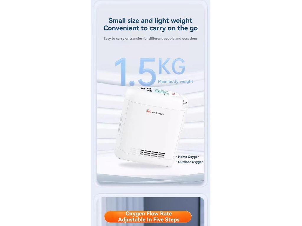 Titan, Jeauyy, Könnyű, Hordozható Oxigénkoncentrátor, akár 96%, 1L-5L Állítható Átfolyású Újratölthető Akkumulátorral, akár 4.5 óra használat, Beltéri és Kültéri Használatra
