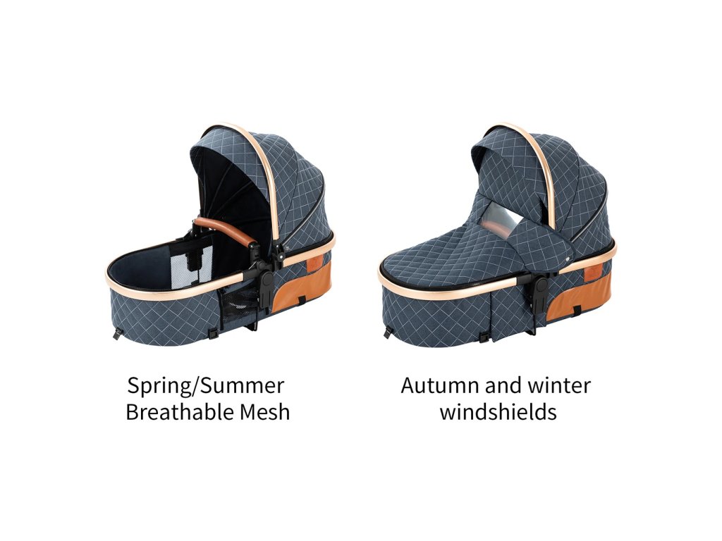 A babakocsi könnyen használható, egyszerű összecsukási mechanizmusokkal és állítható beállításokkal a maximális kényelem érdekében.