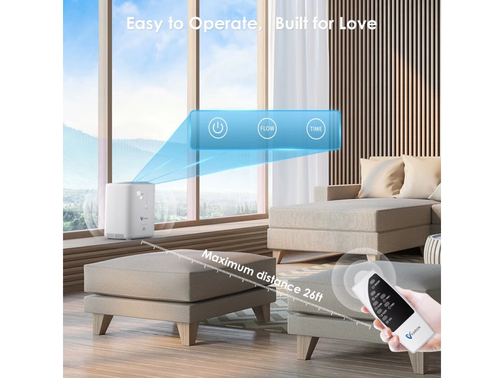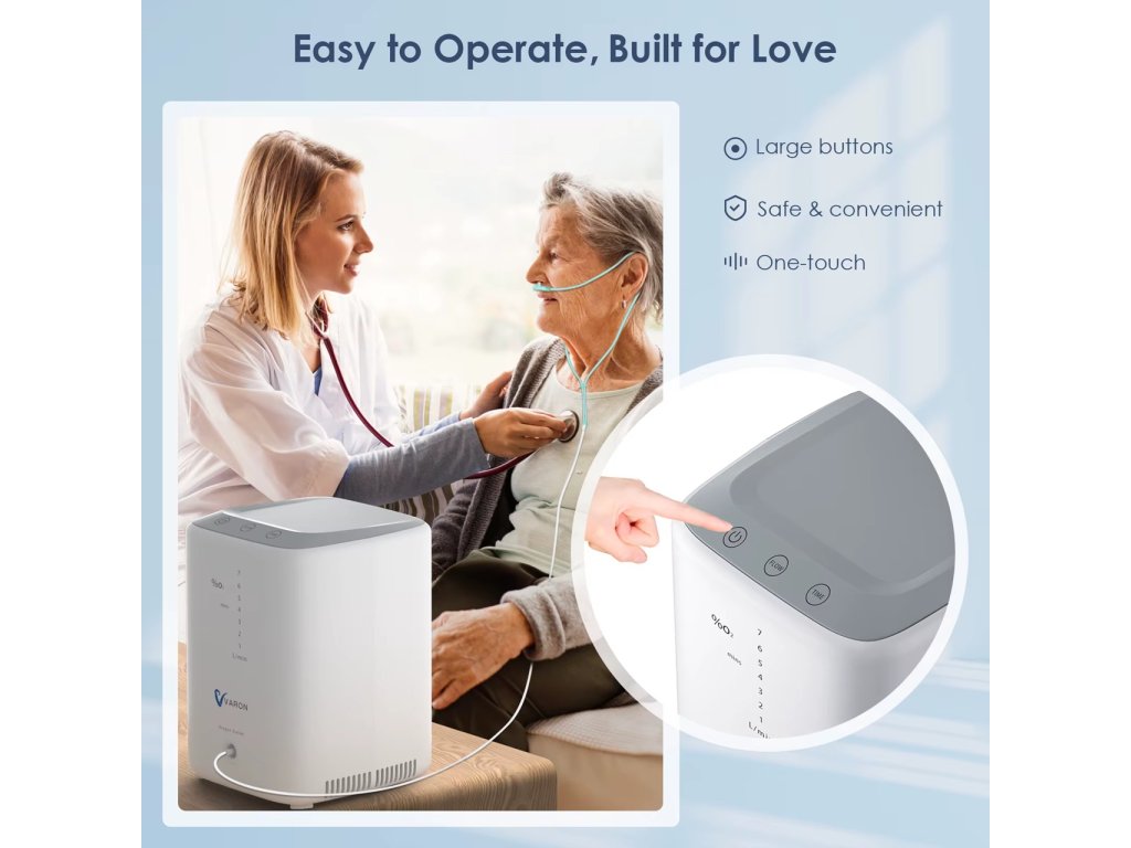 A nagy gomboknak és a távirányító funkciónak köszönhetően idősek is könnyen használhatják. Automatikusan párásítja az oxigént, így nem kell ismételten vizet utántölteni; Az egykattintásos SOS funkció hasznos szerettei védelme érdekében.