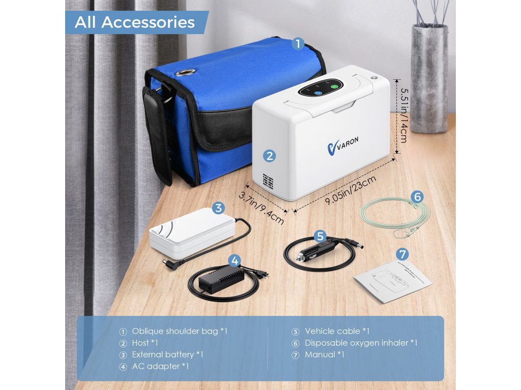 Varon Oxigén Koncentrátor hordozható, akkumulátoros, 1.4 kg, 30W, folyamatos oxigénellátás